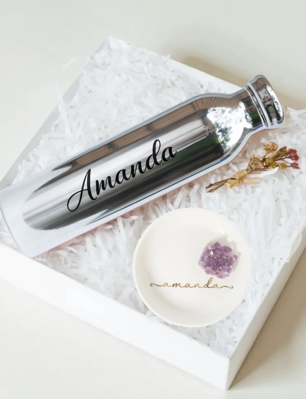 A garrafa vai acompanhada de um porta jóias a sua escolha.