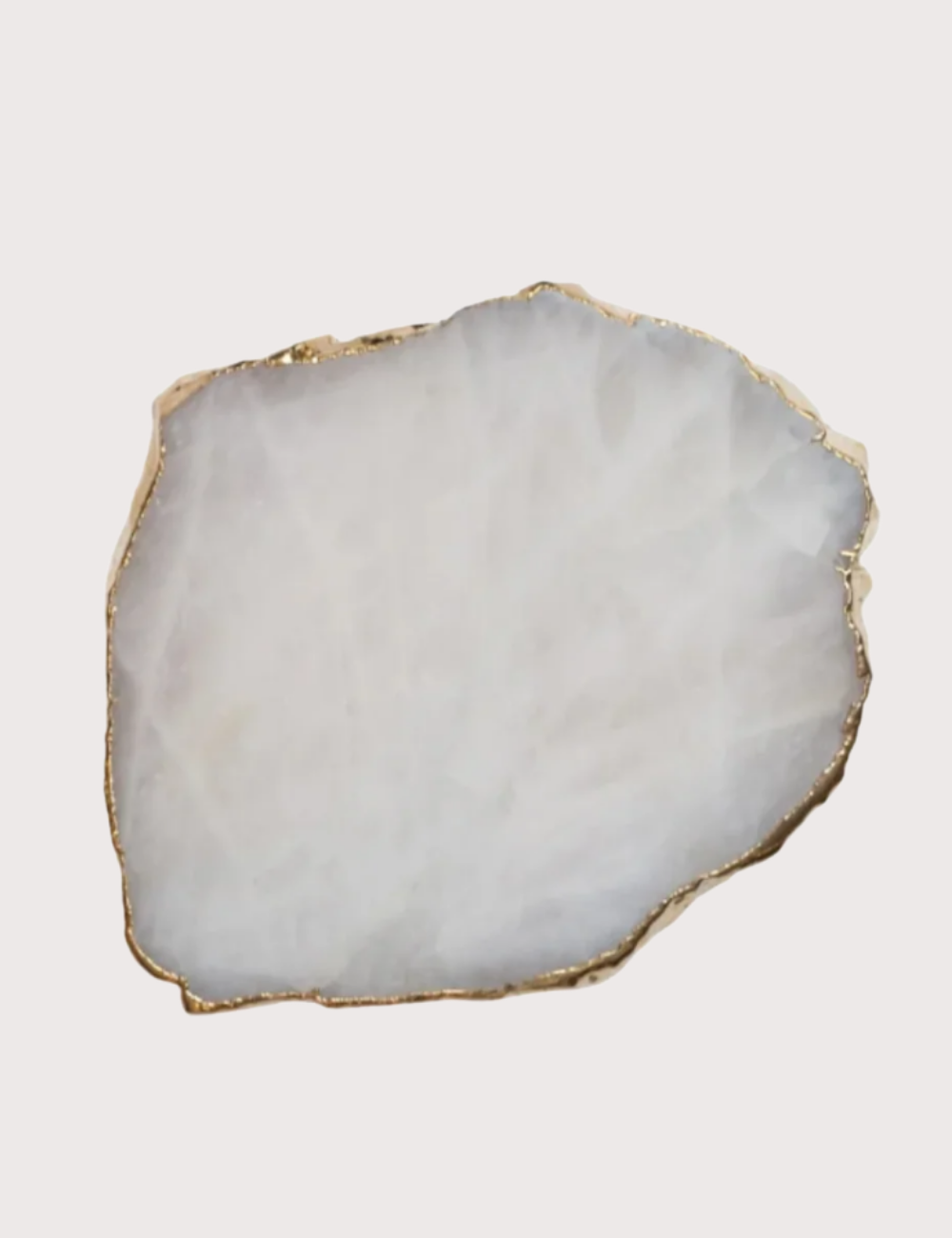 O porta copos em Quartzo, com borda ouro, é um complemento impecável para a sua mesa. Além de decorar o ambiente de forma única, é uma ferramenta de harmonização, equilíbrio e bem-estar. O brilho natural da pedra é complementado pelo acabamento perfeito do ouro. Sua mesa não será mais a mesma.
