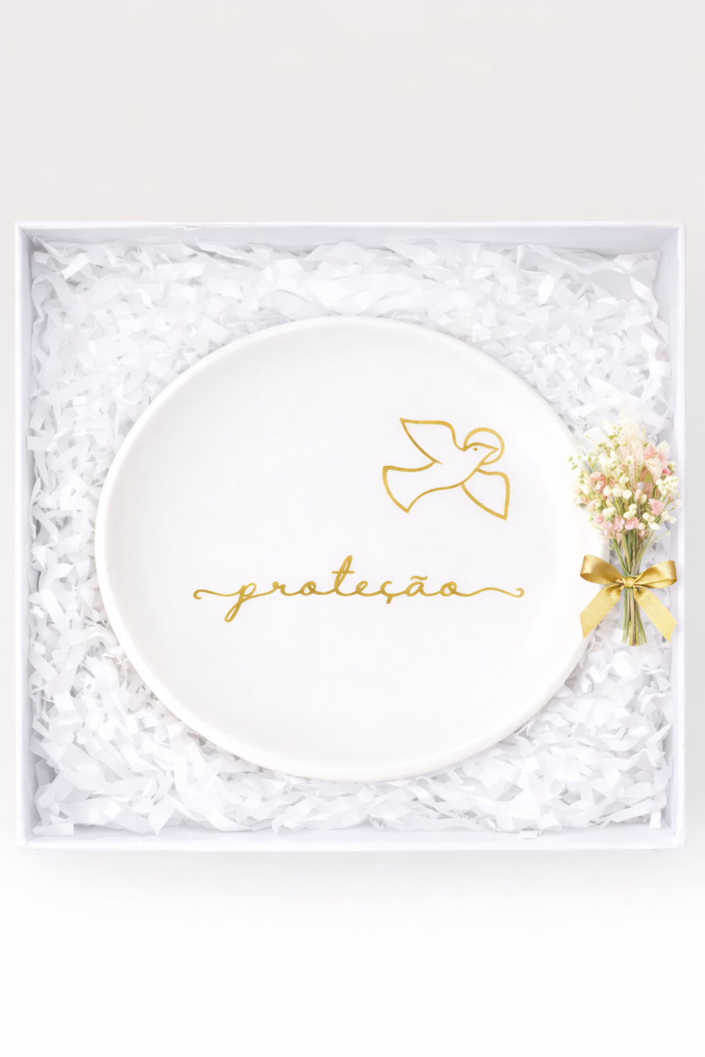 Para os seus pequenos tesouros, porta-joias de porcelana, charmoso e exclusivo, para deixar qualquer jóia descansando em grande estilo, e seu ambiente, mais lindo, energizado e delicado. O Espirito Santo significa mensageiro, simboliza uma mensagem positiva de poder dos conteúdos espirituais, mais especificamente, os poderes curativos do inconsciente.