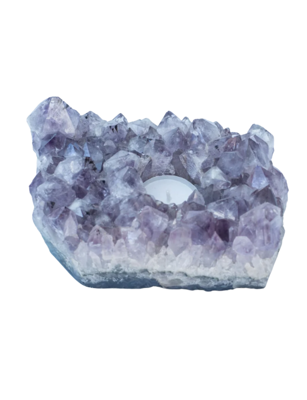 Um porta-velas que une beleza e energia! A drusa de ametista, com espaço central para a vela, transforma qualquer ambiente, trazendo purificação, equilíbrio e uma atmosfera acolhedora.