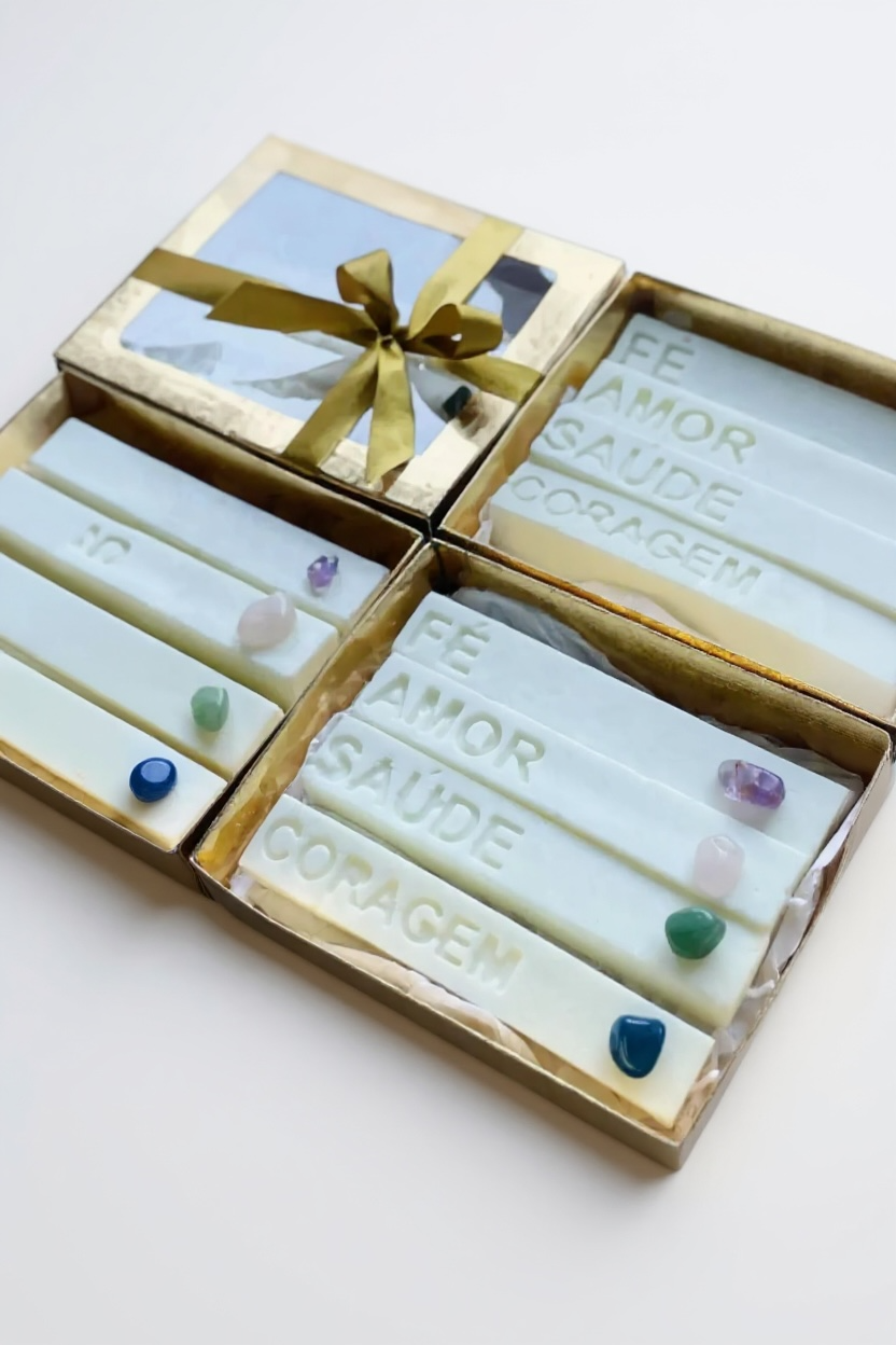 Gift Box com 4 Velas das Intenções com mini cristais